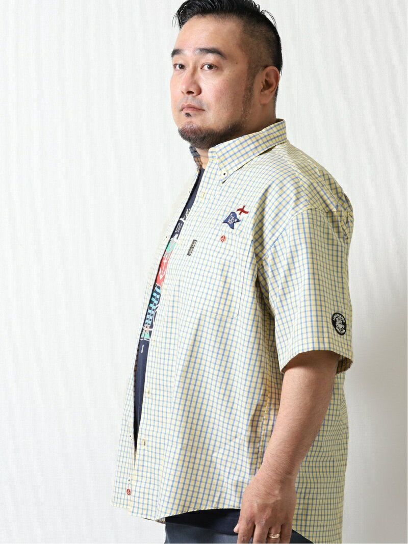 GRAND-BACK 【大きいサイズ】シナコバ/SINA COVA チェック柄ボタンダウン半袖シャツ タカキュー シャツ/ブラウス 長袖シャツ イエロー ブルー【送料無料】